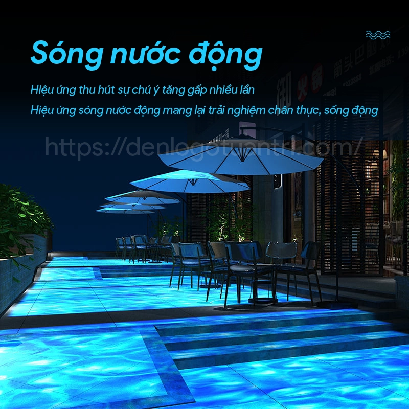 Hiệu ứng nước tuyệt đẹp: Đèn chiếu hiệu ứng nước tạo ra một loạt hiệu ứng ánh sáng mềm mịn giống như nước đang chảy, biển cả đang sóng vỗ hoặc dòng suối mát mẻ. Điều này giúp tạo ra không gian thư giãn và lôi cuốn.