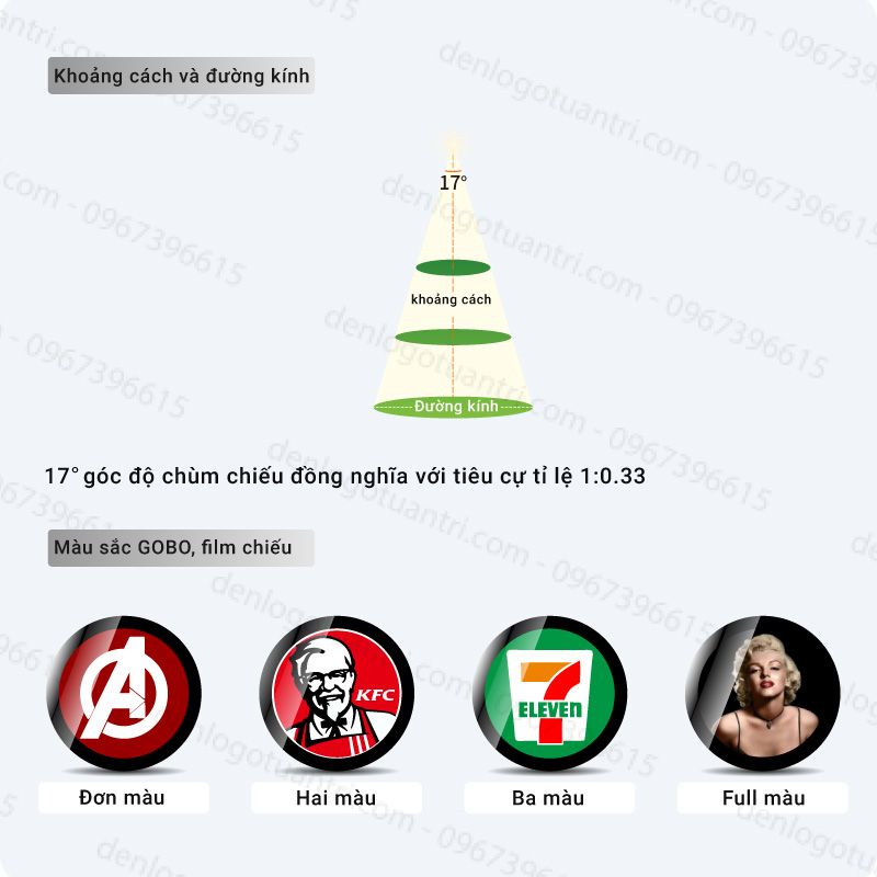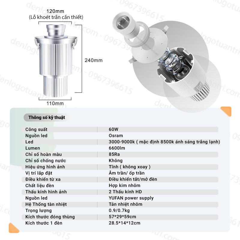 Thông số kỹ thuật đèn chiếu logo 60w âm trần.